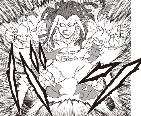 Noch stärker als Granolah geworden, überwältigte Gas Goku und die anderen mit Leichtigkeit. Granolah wurde von einem mächtigen Angriff von Gas KO geschlagen, aber Vegeta eilte ihm zu Hilfe und hielt eine mitreißende Rede, die dem Cerealier die Entschlossenheit gab, die er brauchte, um sich erneut Gas zu stellen! Von da an kämpfte Granolah in einem umfassenden Showdown von Kopf bis Fuß gegen Gas und landete sogar einen verheerenden Angriff auf die Heeter!