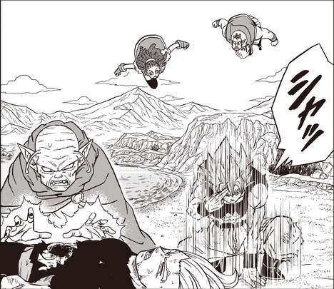Nachdem Goku die letzte Energie von Vegeta erhalten hatte, nahm er es erneut mit Gas auf. Die Stärke des stärksten Kriegers im Universum erwies sich als zu viel für Goku, aber er schaffte es, gerade genug Öffnung zu schaffen, um seine charakteristische Teleportation durchzuziehen und die beiden auf einen anderen Planeten zu bringen.