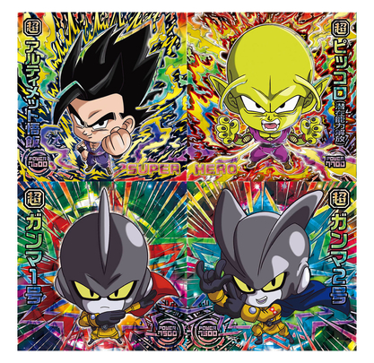 Die Stars des neuen Films, Gohan, Piccolo, Gamma 1 und Gamma 2, kommen in wunderschönen schimmernden Aufklebern!