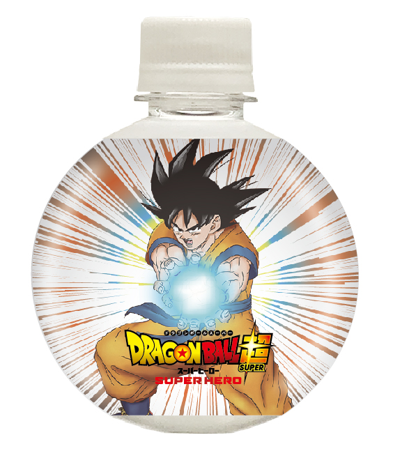 Wenn Sie die Vorder- und Rückseitenbilder auf der Flasche aneinanderreihen, sehen Sie das vollständige „Dragon Ball Super: SUPER HERO“-Filmplakat.