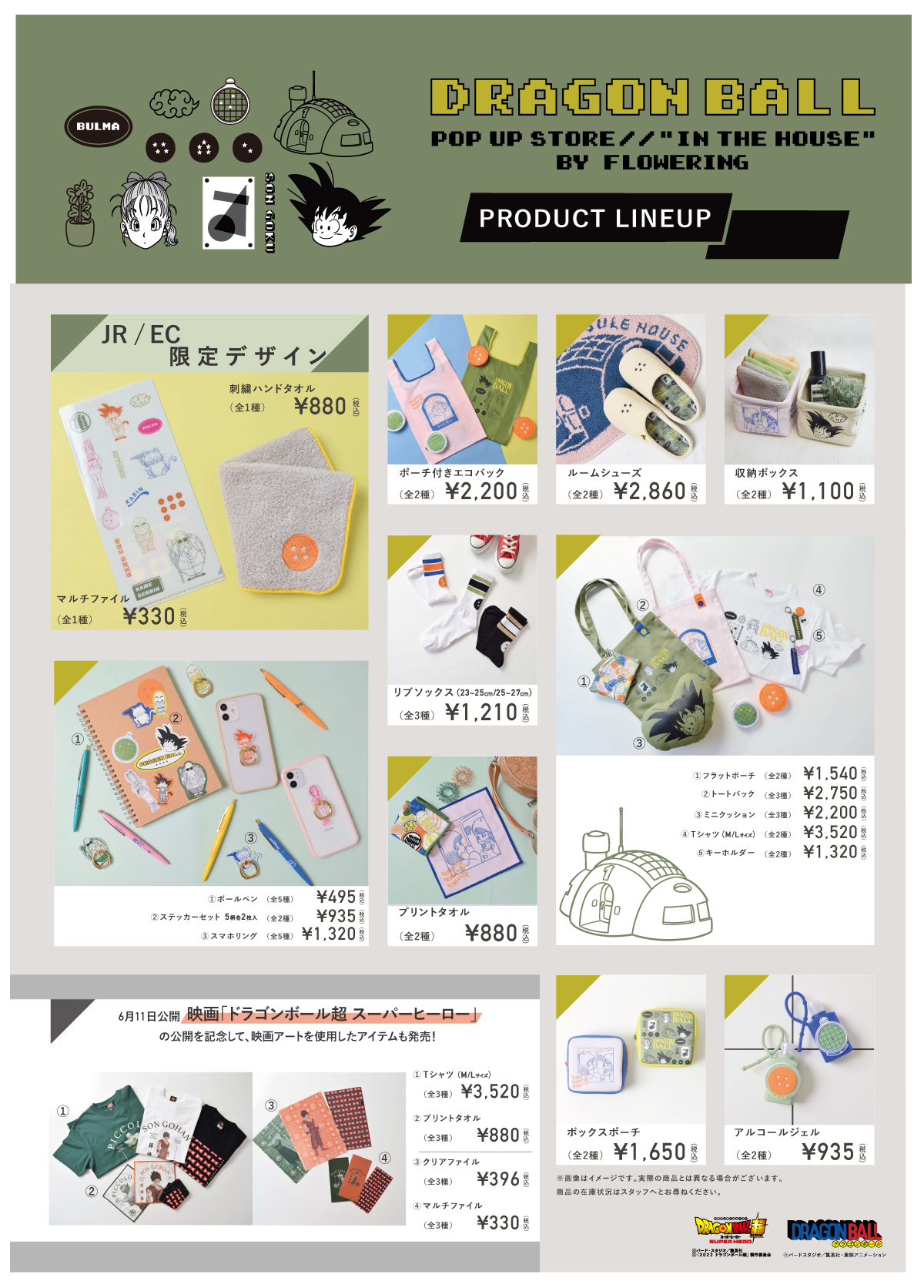 Diese Artikel werden ab dem 22. April (Fr) im Online-Shop von Flowering und in ihren POP-UP STORE-Veranstaltungsorten eingeführt! Stellen Sie sicher, dass Sie etwas mitnehmen, wenn Sie sich „Dragon Ball Super: SUPER HERO“ in den Kinos ansehen!