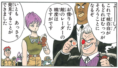 Dank des Dragon Radar , das General Blue von Goku gestohlen hat, konnte Colonel Violet den Five-Star Ball im Handumdrehen lokalisieren! Sie äußerte sich sogar voller Bewunderung über die hohe Präzision des Geräts, als sie zum Hauptquartier der Red Ribbon Army zurückkehrte.