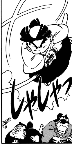 Und wie es der Zufall wollte, enthielt die Ausgabe von Weekly Shonen Jump , in der Young Master Ken'nosuke veröffentlicht wurde, auch das Dragon Ball -Kapitel, in dem Yajirobe seinen ersten Auftritt hatte!