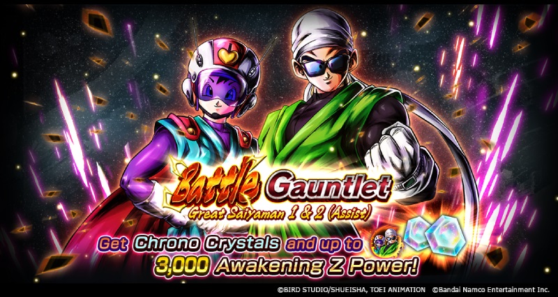 Erobern Sie alle Etagen, um insgesamt 3.000 Awakening Z Power für Great Saiyaman 1 & 2 (Assist) (DBL27-05S) und insgesamt 700 Chrono-Kristalle zu erhalten!