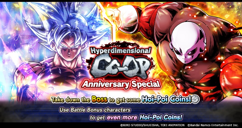 Gewinne in „Jubiläums-Special!! Hyperdimensionaler Koop VS Jiren“ gegen Jiren , um nicht nur Doppelmünzen und großartige Doppelmünzen zu erhalten, sondern auch Hoi-Poi-Münzen und Medaillen zum 4. Jahrestag!