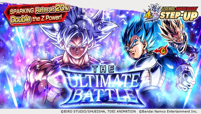 Für die erste Hälfte der „LEGENDS ANNIVERSARY STEP-UP – THE ULTIMATE BATTLE –“-Beschwörung ist die erhaltene Z-Power doppelt so hoch wie normal und die Droprate für SPARKING-Charaktere wird auf 20 % erhöht! Darüber hinaus können Sie in Schritt 6 eine kostenlose Folgebeschwörung genießen!