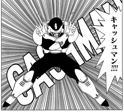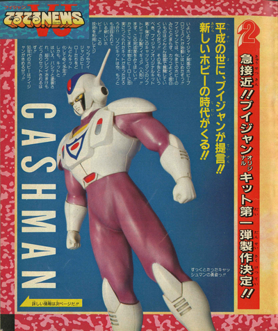 Darüber hinaus zeigte die Ausgabe von V Jump vom 27. November 1991 auch Cashmans Debüt als Actionfigur, die von Akira Toriyama selbst bemalt wurde! Sie können sehen, wie beliebt Cashman bei den Lesern war, die seine Heldentaten in den ersten Ausgaben von V Jump verfolgten.
