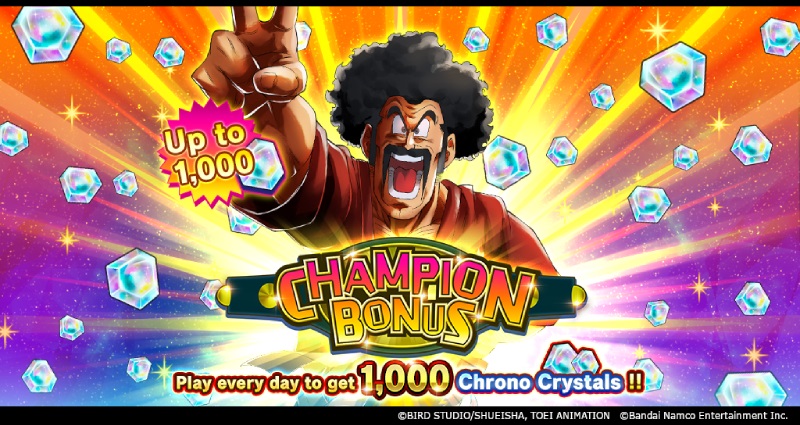 Das CHAMPION BONUS-Event läuft jetzt! Dies ist eine fantastische Chance, insgesamt 1000 Chrono-Kristalle zu erhalten! Schließe diese einmal tägliche Stufe ab und erhalte jeden Tag Chrono-Kristalle!