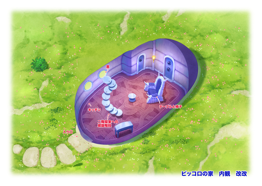 Dank dieser Zeichenfläche können wir tatsächlich einiges über das Innere des Hauses verstehen! Es sieht so aus, als gäbe es ursprünglich auch Pläne für eine Küche, aber wie Ihnen jeder Namekian Experte sagen wird, kann Piccolo ausschließlich von Wasser leben, sodass es kaum Bedarf für eine gibt. Am Ende scheint es, dass er nur einen Stuhl und einen Schreibtisch braucht. Sprechen Sie über einen minimalistischen Lebensstil!