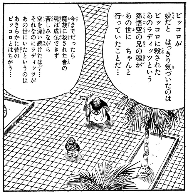 Piccolos andere Hälfte, Kami, erkannte, dass dieser Piccolo nicht so sadistisch brutal war wie sein Vorgänger. Als Beweis dafür stellt Kami fest, dass, wenn jemand von einem Dämon getötet wird, seine Seele normalerweise dazu verdammt ist, ziellos im Weltraum zu driften, niemals in der Lage zu sein, hinüberzugehen und niemals Frieden zu finden. Nachdem sie jedoch von Piccolo getötet wurde, wurde Radditz' Seele nicht zu diesem Schicksal verurteilt und stattdessen in die Unterwelt geschickt.
