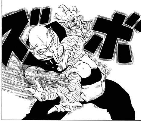 Nachdem er gesehen hatte, wie mächtig der brutale Nappa war, entwickelte Piccolo eine Strategie, um den Schwachpunkt des Saiyajins zu packen: seinen Schwanz. Allerdings hatten beide einfallenden Saiyajins ihre Schwänze für solch eine Gelegenheit verstärkt, was Piccolo einem vernichtenden Schlag auf den Kopf aussetzte.