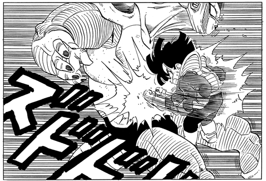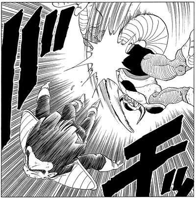 Der furchteinflößende Imperator enthüllt seine zweite, gigantische Gestalt und startet einen erbitterten Angriff, der Krillin dem Tode zu überlassen scheint. Dies macht Gohan so wütend, dass er es schafft, vorübergehend die Oberhand gegen Frieza zu gewinnen, bevor er schließlich niedergeschlagen wird.