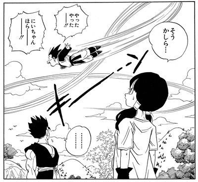 Er beherrscht schnell die Kunst der Ki-Kontrolle, während er mit Gohan trainiert, und kann bald wie ein Profi durch die Luft flitzen.