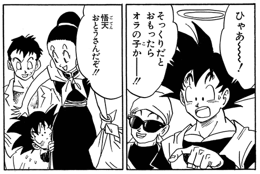 Goten ist Gokus zweites Kind, das er vor dem Kampf mit Cell zurückgelassen hat.