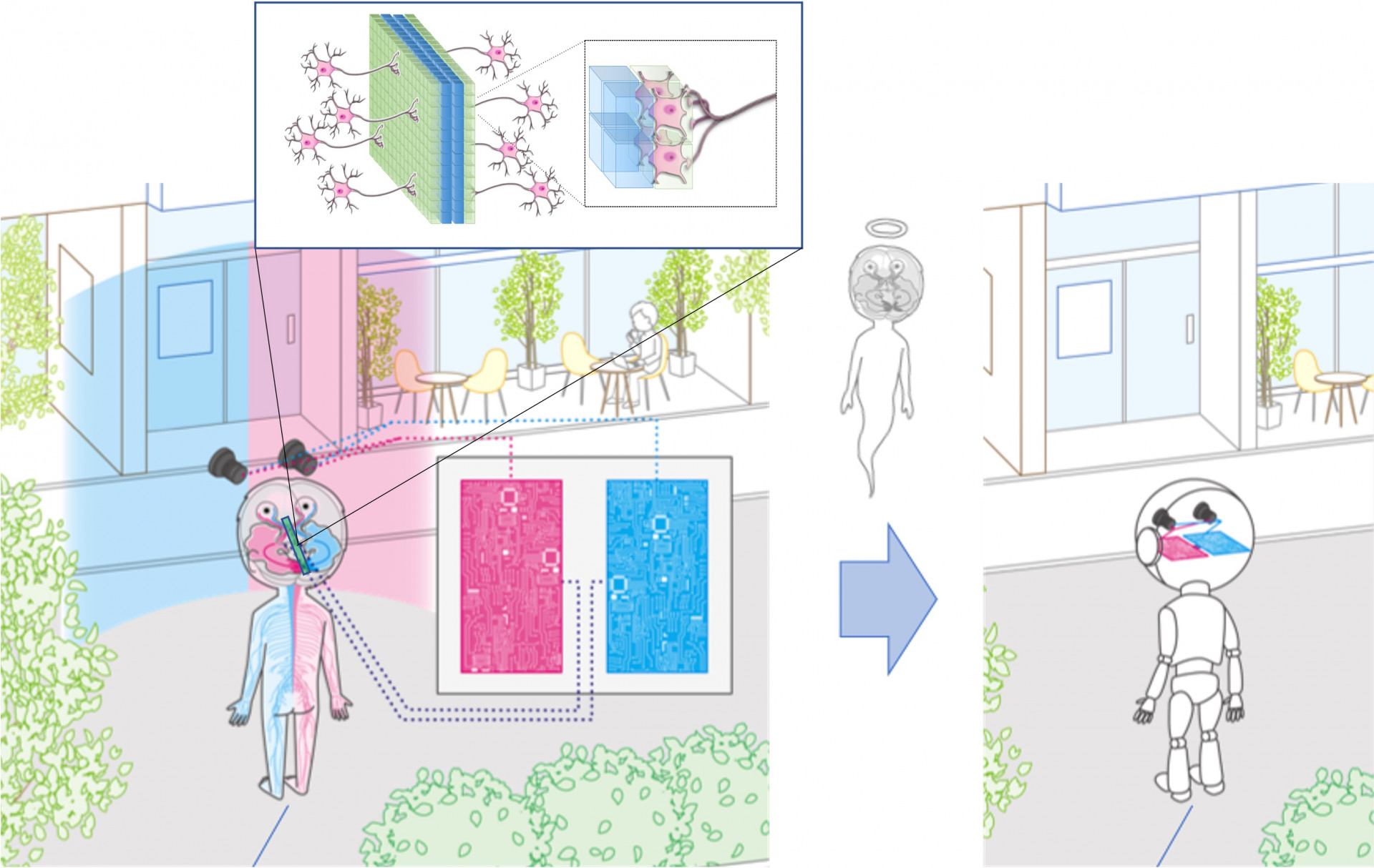 Watanabe: Als reales Problem gibt es viele Gründe, warum das Herunterladen des eigenen Bewusstseins in eine Maschine möglicherweise nicht nach Plan verläuft. Das Einbringen des menschlichen Bewusstseins in eine Maschine erfordert die Nachahmung des menschlichen Gehirns,aber selbst der kleinste Fehler könnte sicherlich dazu führen, dass ein böses Bewusstsein seinen Weg ins Innere findet.