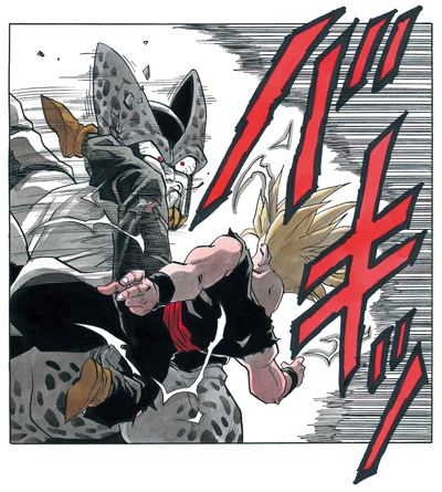Als nächstes stand er Trunks gegenüber, der eine, wie er dachte, noch stärkere Verwandlung als die seines Vaters erreicht hatte. Es verließ sich jedoch zu sehr auf Kraft und Muskeln, während er Geschwindigkeit opferte, und Cell durchschaute diese Schwäche schnell, indem er allen Angriffen des Halb-Saiyajin mit Leichtigkeit auswich und dazu führte, dass er seinen Kampfwillen insgesamt verlor.