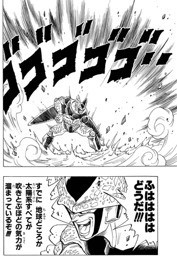 Selbst in seinem ausgeschalteten Zustand hatte Cell ein Ass im Ärmel: die Fähigkeit zur Selbstzerstörung, in der Hoffnung, Gohan und die Erde zusammen mit ihm auszulöschen! Dank Gokus schneller Denkweise und sofortiger Teleportation wurde Cell jedoch gerade rechtzeitig zum Planet of the Kaio transportiert, um die Erde vor der Zerstörung zu retten! Dies führte jedoch dazu, dass Goku, der winzige Planet, und alle darauf in Stücke gerissen wurden.