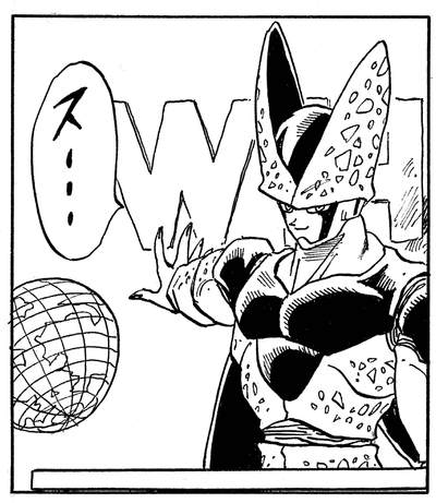 Cell griff ein Studio eines Fernsehsenders an, um eine Sendung zu kapern und der Welt die Eröffnung seines eigenen Turniers zu verkünden: die Cell Games! Mit einem scheinbaren Aufflackern für das Dramatische gab er eine prophetische Leistung, indem er die Wand mit einem Bild der Erde hinter sich zerstörte.