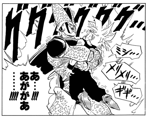 Cell geriet in Raserei und versuchte die gleiche machtlastige Transformation wie Trunks , um Gohan zu überwältigen, nur um sich am empfangenden Ende von noch mehr Angriffen des wütenden jungen Kriegers wiederzufinden. Ein Angriff traf ihn so hart, dass er tatsächlich Android 18 wieder herauswürgte und zu seiner Second Form zurückkehrte!