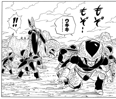 Fasziniert von der Aussicht, Gohans wahre Stärke durch seine Wut entfesselt zu sehen, produzierte Cell mehrere beängstigende Cell Jr., um Goku und die anderen bösartig anzugreifen.