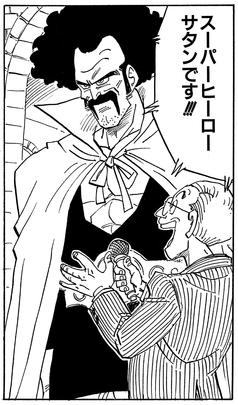Der richtige Name des Weltmeisters ist Mark, und „Mr. Satan“ ist nur ein Ringname, den er sich ausgedacht hat. Er lebt an einem Ort, an dem die Menschen bei der Geburt nur einen Namen bekommen, also hat er keinen normalen Nachnamen. Übrigens ist Mark oder "Maaku", wenn man es mit japanischer Aussprache sagt, ein Wortspiel mit dem japanischen Wort für Teufel, "Akuma".