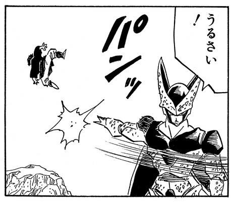 Mit diesem Zug landet er einen sauberen Treffer direkt auf Cells Gesicht, aber es hat absolut keine Wirkung auf den Bösewicht.