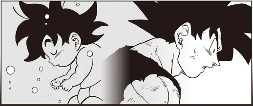 Als Goku vom Kampf seines Vaters erfährt, erinnert er sich an eine Erinnerung aus seiner frühen Kindheit. Vegeta kommt auch zu der Erkenntnis, dass er die ganze Zeit die falsche Last getragen hat.