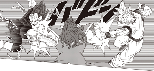 Vegeta nutzt seine Ultra Ego -Transformation, um es mit Gas aufzunehmen! Obwohl er auf der Empfängerseite der Angriffe des Heeter steht, nutzt er die Fähigkeit seiner Form, Schaden als Treibstoff zu nutzen, um seine Stärke zu ändern und zu entwickeln, und beginnt, einige entscheidende Gegenangriffe zu landen! Der Schaden fordert jedoch schließlich seinen Tribut und Vegeta bricht zusammen. Bevor Gas den letzten Schlag ausführen kann, rettet Goku Vegeta und verwandelt sich in seine schwarzhaarige Ultra Instinct -Form!