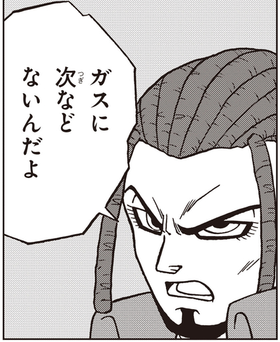 Durch ihr Hin und Her schien Granolah die Oberhand zu gewinnen. Als Elec den Kampf überblickte und feststellte, dass sein Bruder verlieren könnte, beschloss er, den Spieß zu ihren Gunsten umzudrehen, indem er den Begrenzer entfernte, den Gas trägt, um seine ursprünglichen Instinkte in Schach zu halten! Mit seiner entfesselten Kraft verlor Gas die Kontrolle über sich selbst und wütete wild und griff Freund und Feind gleichermaßen an!