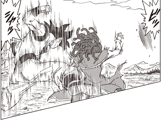 Granolah wurde von dem neu erwachten Gas besiegt, doch Goku griff ein, um einzugreifen, nachdem er die letzte Energie von Vegeta erhalten hatte.