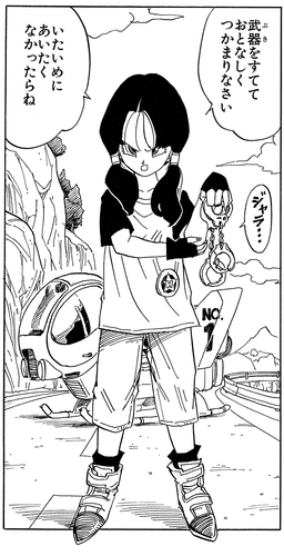 Sie hat einen ausgeprägten Gerechtigkeitssinn und hilft regelmäßig der örtlichen Polizei aus. Sie ist entschlossen, die wahre Identität des „Goldenen Kriegers“ herauszufinden, der eine Gruppe von Bankräubern in der Stadt besiegt hat, ohne zu wissen, dass tatsächlich Gohan eingegriffen hat, während er sich in einen Super Saiyan , um nicht erkannt zu werden.