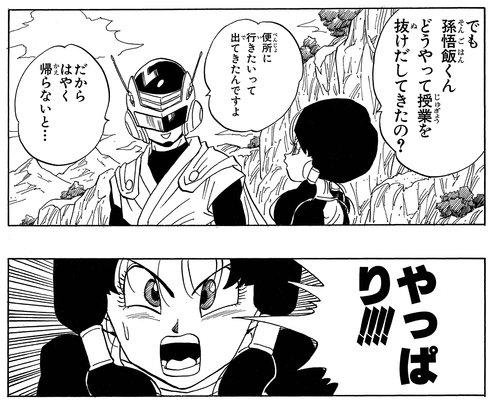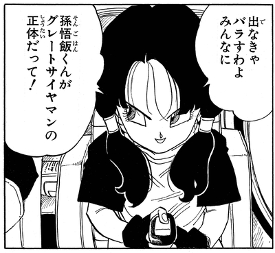 Mit einer cleveren Fragestellung bringt sie den Helden dazu, seine geheime Identität preiszugeben: Gohan!