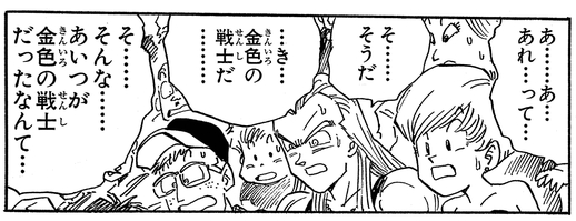 Shapner hatte anfangs Zweifel an Gohans Kampffähigkeiten, aber nachdem er sich in einen Super Saiyan verwandelt hat, bewertet er ihn komplett neu und sagt: „Er ist der Goldene Krieger“ mit einem Ausdruck reinen Schocks.