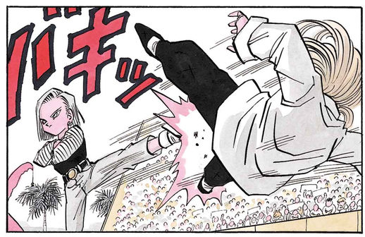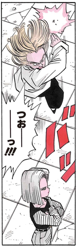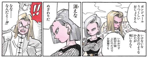 Wütend darüber wird Jewel ernst und versucht, Android 18 schnell zu besiegen, aber ein einziger Seitentritt von ihr schickt die Möchtegern-Damenmörderin ins Aus.