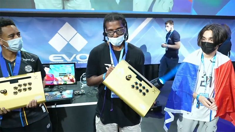 Die Preisverleihung fand im Anschluss an das große Finale statt, bei dem die folgenden drei Erstplatzierten goldfarben schimmernde Arcade-Steuerpads erhielten: Yasha aus Frankreich (3. Platz, Bild links), Nitro aus den USA (2. Platz, Bild Mitte) und Wawa aus Frankreich (Platz 1, Bild rechts). Wir freuen uns darauf, diese drei bei der Dragon Ball FighterZ World Tour 2022–2023 weiterzuführen!