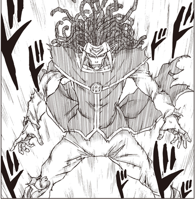 Nachdem er von Gokus heftigem Angriff gefallen war, grub sich Gas tief in seine eigene Entschlossenheit, seine volle Kraft auf Kosten seiner eigenen Lebenskraft zu entfesseln! Die schockierende Verwandlung löste sogar bei seinen eigenen Brüdern und Schwestern Besorgnis aus – außer bei Elec, der mit sadistischer Freude zusah.