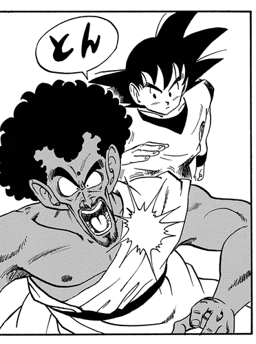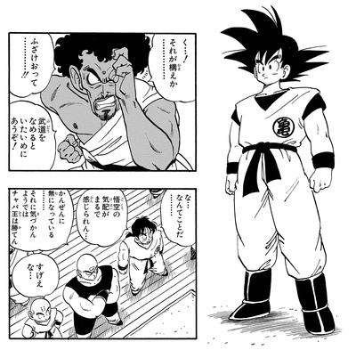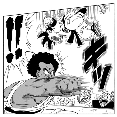 Dies führt dazu, dass der ehemalige Champion ernst wird und seine unglaubliche Hasshu-Ken (Eight-Handed Technique)! Selbst das erweist sich als unwirksam, da Goku jeden Angriff mit Leichtigkeit blockt und ausweicht, bevor er King Chappa mit einem Sweep-Kick zu Boden schickt. Als Goku scheinbar einen strategischen Fehler macht, indem er in die Luft springt und dadurch seine Beweglichkeit einschränkt, macht sich King Chappa bereit, den entscheidenden Schlag zu versetzen. Sie können sich den Schock des Königs vorstellen, als Goku so stark ausatmet, dass er seinen Abstieg verlangsamt und dem ankommenden Angriff ausweicht. King Chappa wird dann bald durch einen geschickten Tritt des jungen Saiyajins aus dem Feld geworfen.