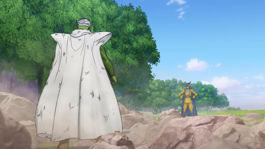 In SUPER HERO sahen wir Piccolo in der Rolle eines Anführers – von der Art und Weise, wie er die Basis der Red Ribbon Army im Alleingang infiltrierte, bis hin zu seiner Fähigkeit, seine Verbündeten zu koordinieren. Vielleicht sind sein taktischer Verstand und seine Initiative beim Handeln auch Eigenschaften, die er vom Dämonenkönig geerbt hat?
