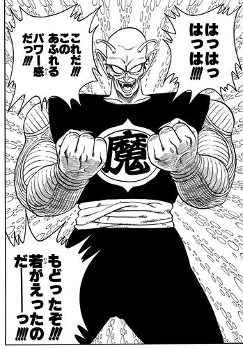 Piccolo hatte auch einen eigenen Schüler: Gohan. Als Gohan ein kleiner Junge war, wandte Piccolo mühsame Methoden an, um ihn zum Überleben zu trainieren. Wenn man diese Zeit mit dem vergleichsweise gemütlichen Training vergleicht, das er mit Pan während SUPER HERO durchführt, könnte man vermuten, dass seine Mentoring-Philosophie der von Kami angenähert ist. Wenn er Pan freundlich und geduldig das Konzept des Buku-Jutsu erklärt, wirkt er fast wie eine andere Person als seine Bereitschaft, seine Gegner im echten Kampf gnadenlos aus der Luft zu jagen!