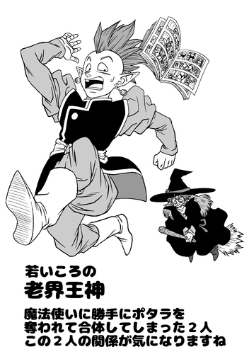 Der junge Elder Kai und die Hexe, die einen seiner Potara Earrings gestohlen hatte, was dazu führte, dass sie fusionierten.