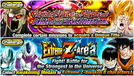 Dem Herausforderungsereignis „Fighting Spirit of the Saiyajins und Pride of the Wicked Bloodline“ wurden neue Stages hinzugefügt, fünf neue Extreme Z-Awakenable-Charaktere in „Fight! Battle for the Strongest in the Universe“ und mehr sind ab sofort im Spiel verfügbar !