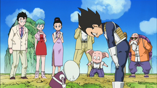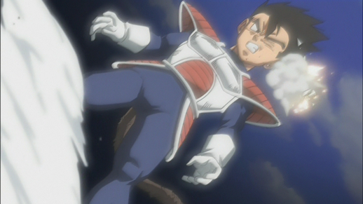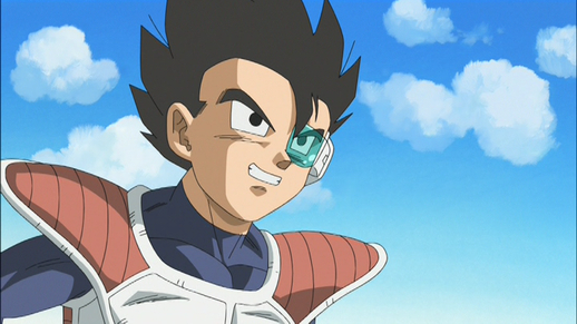 Als Tarble um Hilfe beim Umgang mit Abo und Kado bittet, ist Goku wie üblich von der Aussicht auf einen Kampf begeistert. Tarble scannt ihn mit seinem Scouter und weist ihn zunächst wegen seines scheinbar niedrigen Power Level ab, aber seine Melodie ändert sich bald, als Goku sich in einen Super Saiyan und den überladenen Scouter explodieren lässt!