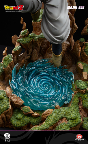 Wenn wir auf den dioramaartigen Sockel der Figur blicken, können wir sehen, dass sich aus der reinen Energie, die Majin Buu (Kid) angesammelt hat, ein Strudel gebildet hat. In Kombination mit den zerklüfteten Felsformationen, die sie umgeben, erhöht es wirklich die Gesamtwirkung der Statue!!