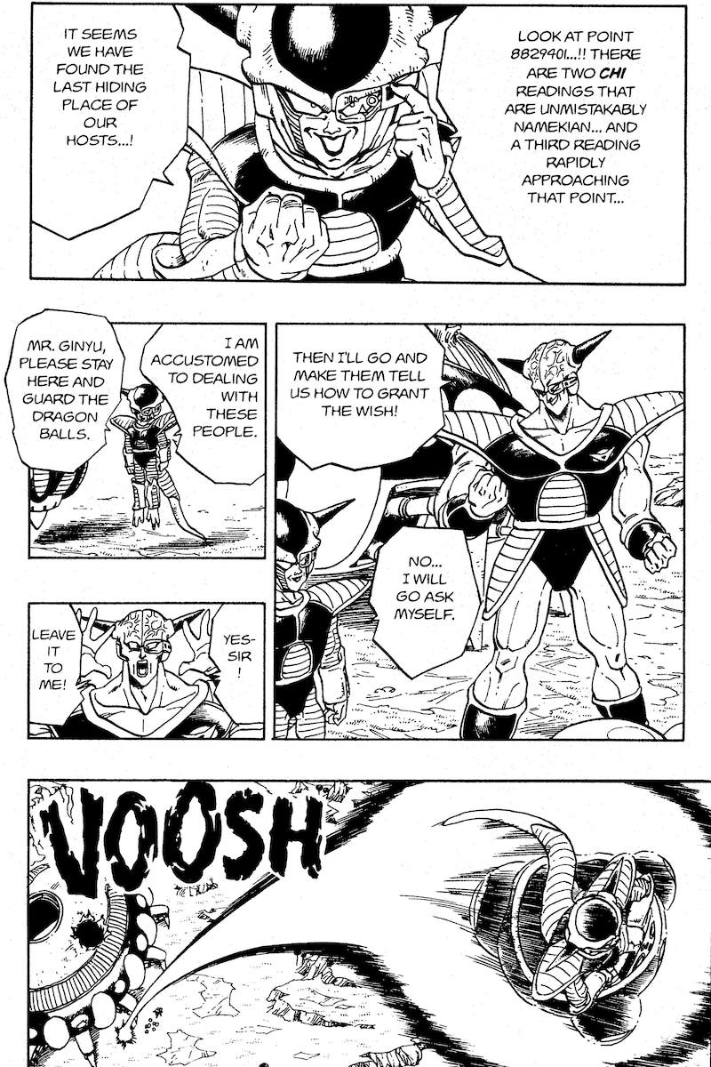 ▲ Im obigen Panel sehen wir ein Beispiel dafür, wie Frieza bei Bedarf selbst handelt, anstatt alles seinen Untergebenen zu überlassen.