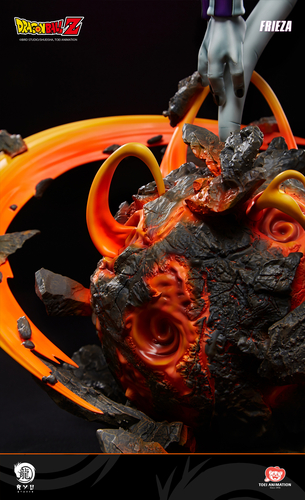 Die Basis der Statue wurde ebenfalls modelliert, um die Zerstörung des Planet Namek, und die flüchtige Kugel aus geschmolzenem Gestein ergänzt Friezas bösartige Aura perfekt und bringt das ganze Stück auf eine ganz neue Ebene!