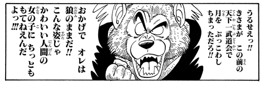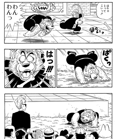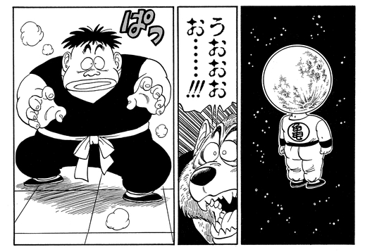 Um die Explosion des Mondes wiedergutzumachen, entwickelt Jackie Chun einen Plan, um Man-Wolf wieder in seine menschliche Form zu bringen! Durch die Verwendung von Hypnose und der Rückseite von Krillins zufälligerweise mondförmigem Noggin ist die Transformation ein Erfolg!