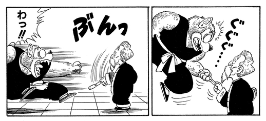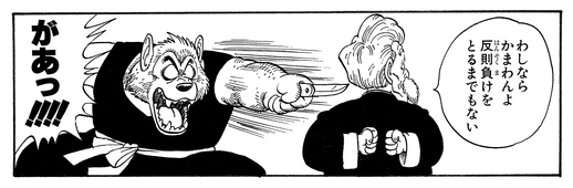 Jackie Chun kontert diesen Angriff, indem er selbst einen Gegenstand auswirft – einen Knochen! Man-Wolf kann seine wilden Instinkte nicht ignorieren und jagt ihn ins Aus, was zu einem Ring-Out führt.