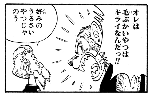 Als Jackie Chun den Mond zerstörte, blieb Man-Wolf in seiner Wolfsform stecken, die bei menschlichen Damen anscheinend unbeliebt ist. Als sein verhasster Feind vorschlägt, dass er stattdessen eine Wolfsfreundin sucht, wird er sehr wütend und schreit: „Ich hasse pelzige Menschen!“