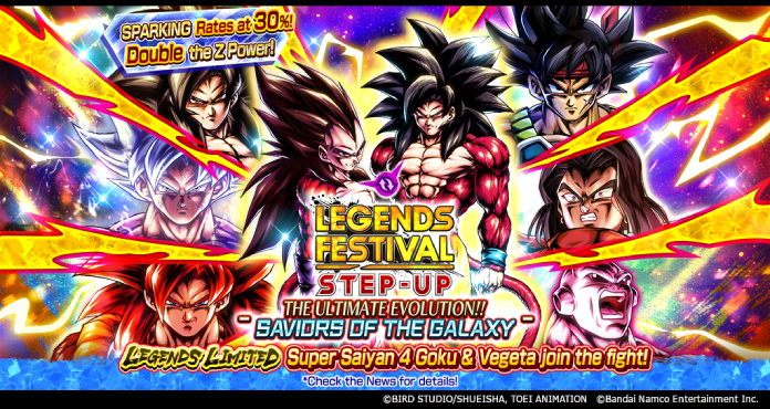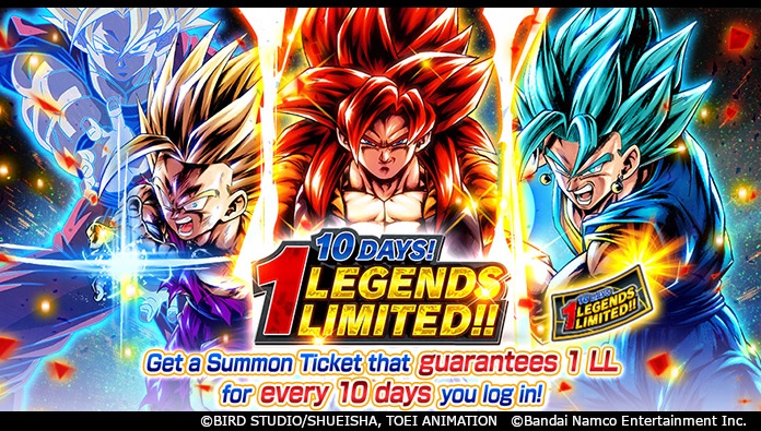 Der neueste Tag-Charakter von Legends, LEGENDS LIMITED Super Saiyan 4 Goku & Vegeta (DBL53-01S), schließt sich dem Kampf in dieser erstaunlichen Step-Up-Beschwörung an! Alle Schritte haben das Doppelte des regulären Z-Power-Ups zu bieten, zusammen mit einer SP-Drop-Rate von 30 %, und der 6. Schritt ist eine kostenlose aufeinanderfolgende Beschwörung!