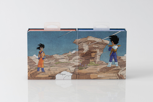 Der Ladekoffer ist so konzipiert, dass er den Space Pods ähnelt, mit denen die Saiyajins die Galaxie bereisten! Die Kopfhörer des Goku-Modells sind so gestaltet, dass sie Gokus Kampfkunstdogi und Gürtel ähneln, während das Vegeta -Modell ein Design aufweist, das auf seiner Kampfrüstung basiert. Und die Pakete enthalten jeweils Kunstwerke, die, wenn sie zusammengesetzt sind, die ikonische Szene darstellen, in der Goku und Vegeta sich darauf vorbereiten, zum ersten Mal im Ödland gegeneinander anzutreten.